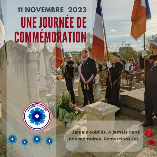 11 Novembre 2023… SOUVENONS NOUS À la veille de chaque 11 Novembre, des bleuets de France  fleurissent sur les monuments commémoratifs et aux revers des vestes et manteaux. Cette fleur bleue est devenue l’emblème des anciens combattants et des victimes de la Première Guerre mondiale. Avec le Bleuet, le soldat inconnu représente l’autre symbole de…