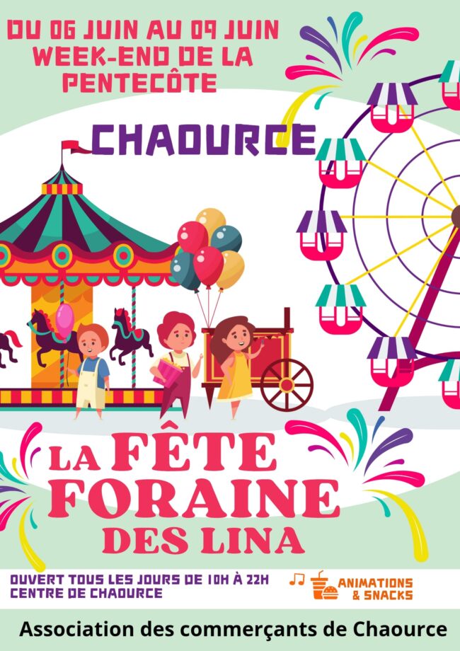 Fête Foraine de la Pentecôte à Chaource ! Préparez-vous à un week-end de fête inoubliable à Chaource ! Du 6 au 9 juin, la Fête Foraine des Lina s’installe au cœur de la ville pour le week-end de la Pentecôte. Au programme : manèges pour petits et grands, attractions palpitantes, stands gourmands et bien sûr,…