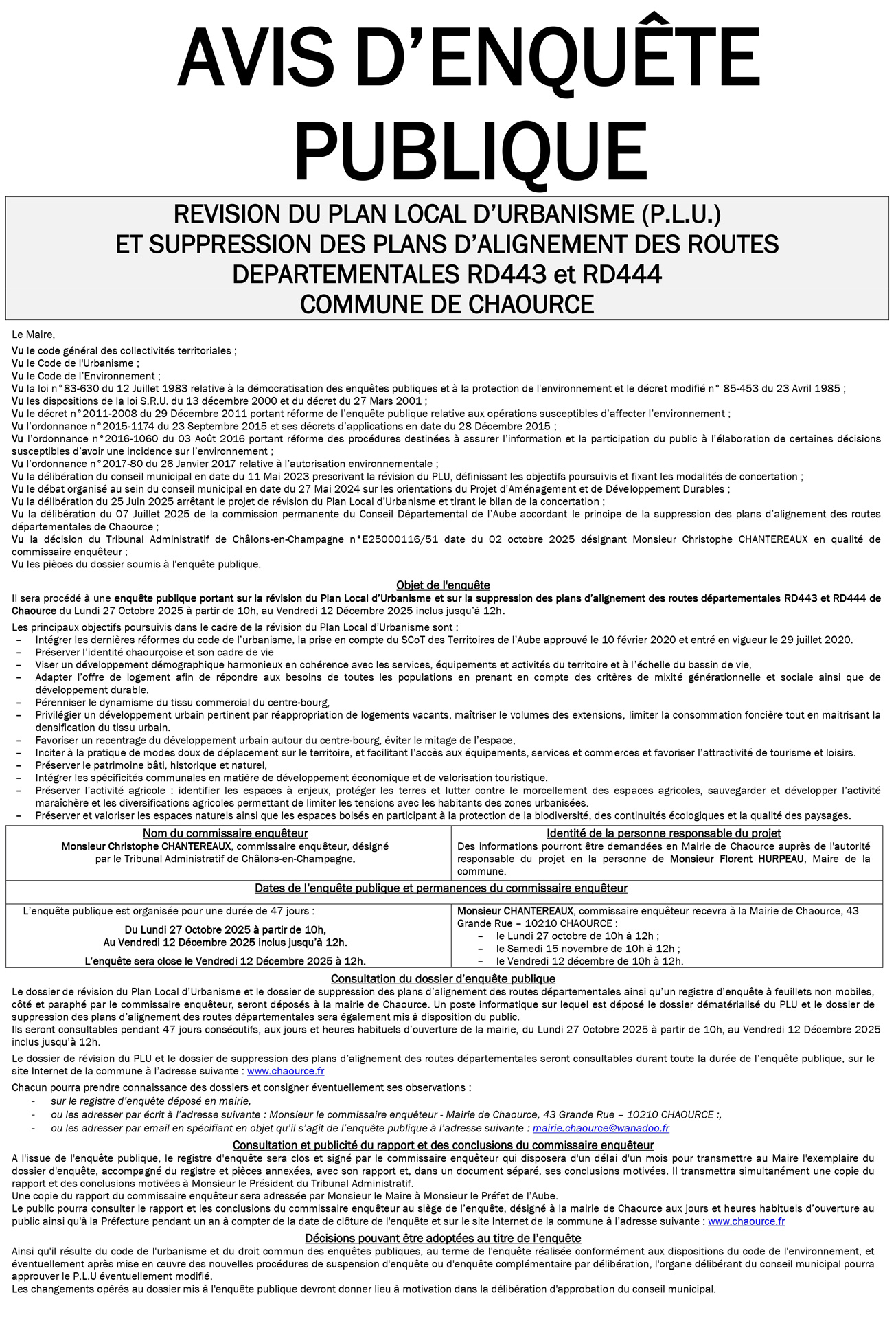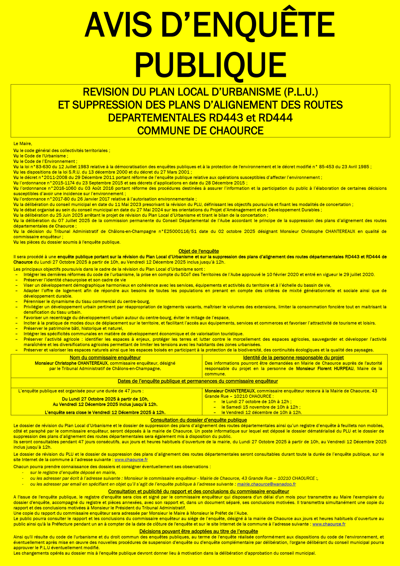 > 0.1_ Avis d’enquête publique – Commune de Chaource (du 27 Oct. au 12 Déc. 2025)