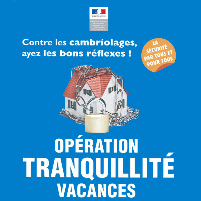 Les gendarmes de la Communauté de Brigade de Bouilly vous informent ! Les faits : « Les vacances approchent, les Gendarmes veillent sur votre domicile pendant votre absence grâce à l’opération tranquillité vacances » Nos conseils : Vous partez bientôt en vacances ? Afin d’éviter les cambriolages, vous pouvez vous inscrire à l’opération tranquillité vacances.…