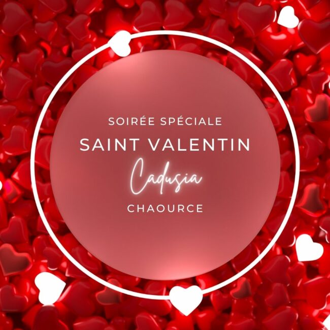 Mercredi 14 Février : CHAOURCE – Menu de la Saint Valentin à l’hôtel restaurant Le Cadusia. ❤️❤️ Menu Spécial Saint Valentin ❤️❤️ Mise en bouche à picorer en amoureux Panna cotta choux fleurs et saumon gravlax La rose de Dorade marinée agrumes/gingembre déclinaison de radis Noix de Saint Jacques snackées beurre vanille de Madagascar, duo…