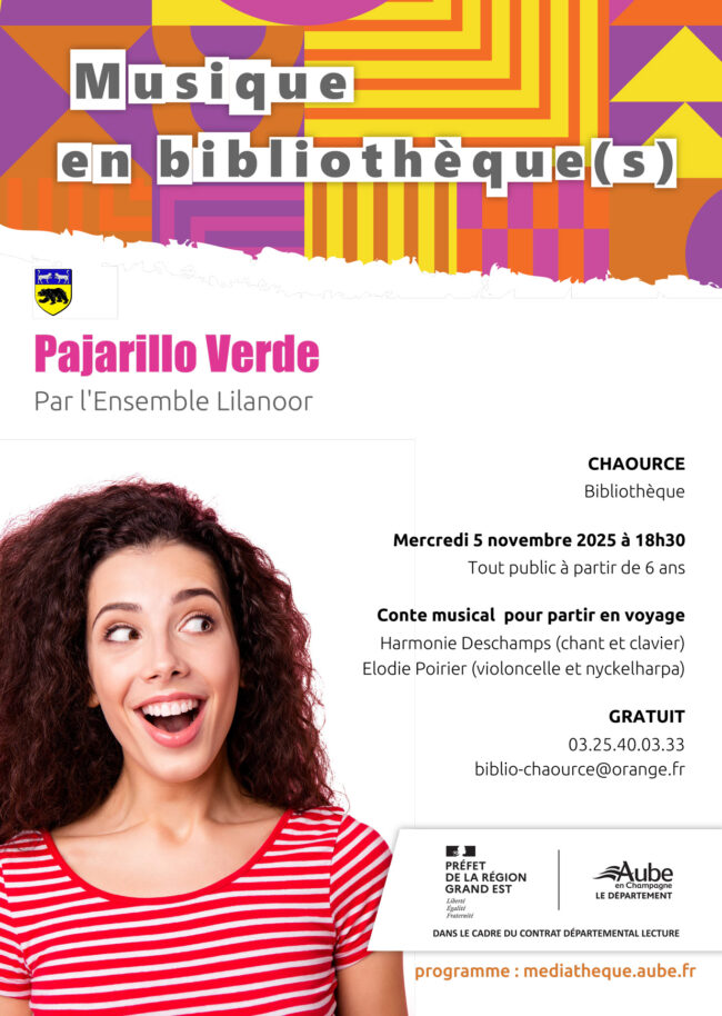 A retenir votre soirée du 5 Novembre à 18:30, pour tout public, à partir de 6 ans, c’est gratuit, l’ensemble Lilanoor vous fera partir en voyage avec un conte musical. Harmonie Deschamps et Elodie Poirier sauront captiver l’auditoire !  » Le conte musical présenté par l’Ensemble Lilanoor s’intitule « Pajarillo Verde ». L’ensemble est sous la direction…