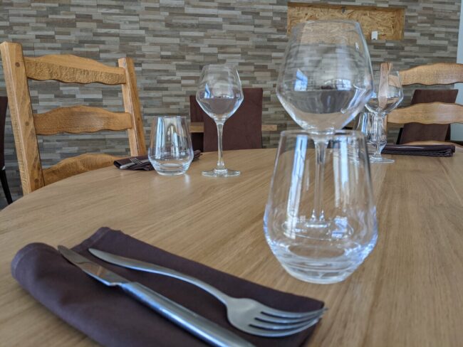 Entrée – Poisson – Plat – Fromage et Dessert à 60 €  ou Entrée – Plat – Fromage et Dessert à 55 € (boissons non comprises) Pressé de saumon fumé aux délices de Mussy frais et parfum d’aneth Dos de poisson blanc snack et en croûte de graines de sésame torréfiées et son risotto vénéré…