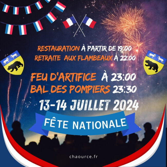 Samedi 13 Juillet : Traditionnel feu d’artifice & Bal des pompiers  Festivités & Programme : Organisé par l’Amicales des Sapeurs Pompiers de Chaource. Restauration à partir de 19:00 (parking Comcom – Pompiers) 22:00 : Retraite au flambeau (à la Mairie) 23:00 : Feu d’artifice (stade de Foot) 23:30 : Bal des pompiers (parking Comcom) Venez…