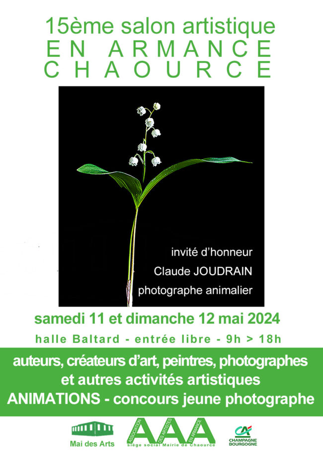 Le Salon Artistique est reconduit en 2024, le 2ème week-end de Mai, samedi 11 et dimanche 12 Mai prochain. Entrée libre Invité d’honneur : Claude Joudrain – Photographe animalier Halle Baltard de Chaource Horaires : 09:00 à 18:00 Auteurs, créateurs d’Art, peintres, photographes et autres activités artistiques. Animations, concours jeune photographe. Le Salon Artistique : un…