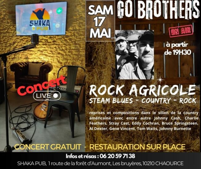 Rock Agricole: Steam Blues – Country – Rock Samedi 17 Mai à partir de 19:30 Reprises et compositions dans le sillon de la Conutry américaine avec entre autre Johny Cash, Charlie Feathers, Stray Cats, Eddy Cochran, Bruce Springsteen (Le Boss !), Al Dexter, Gene Vincent, Tom Waits, Johny Burnette, etc. Restauration sur place Réservation fortement…